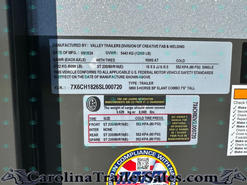 New 2026 Valley 3800 3 Horse Trailer Are you looking for a reliable and spacious horse trailer? This brand new 2026 Valley 3800 model offers the perfect combination of functionality and convenience, making it ideal for transporting your horses securely and comfortably. Key Features: Model: Valley 3800 Year: 2026 Type: 3 Horse Slant Load, Bumper Pull Construction: Steel Enhanced Comfort and Utility: Roomy Interior: 7'6" tall and 6'8" wide, providing ample space for your horses to travel comfortably. Dressing Room: Includes a 3' DR/LQ wall, offering private space for gear and preparations. Convenient Loading: Features a single rear door with a slider for easy loading and unloading. Safety and Durability: Construction: Built with durable steel to withstand the demands of road travel and horse transport. Ventilation: Stock sides and an escape door ensure proper airflow throughout the trailer. Additional Amenities: Tack Storage: Front tack area for storing saddles, bridles, and other equipment. Flooring: Mats provided for additional comfort and safety for the horses. Technical Specifications: Dimensions: Length: 19', Width: 6' 8", Height: 7' 6" Color: Charcoal, offering a sleek and modern look. Why Choose This Trailer? This 2026 Valley 3800 is more than just a transport solution its an essential part of your equestrian activities. Whether heading to shows, races, or trail rides, this trailer provides a safe, comfortable, and convenient way to move your horses. Need it hauled? We work with a Highly Recommended Hauling Company with reasonable rates. |