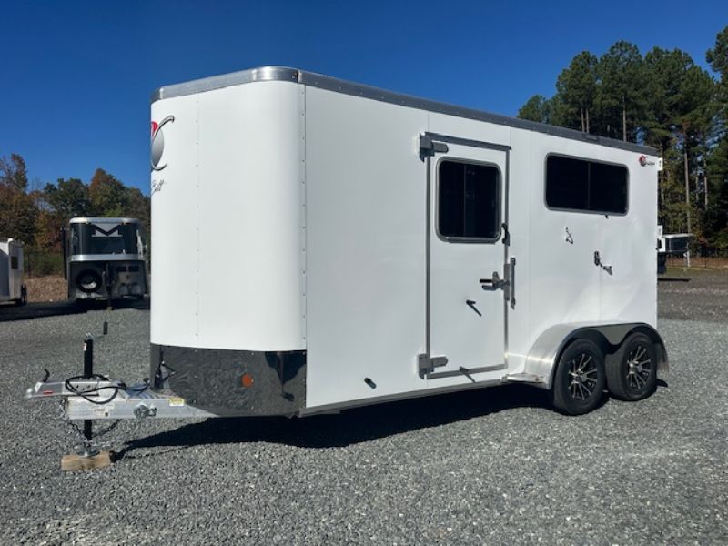 2026 Kiefer Kruiser 2 H straight load, rear ramp with Dutch doors, two full escape doors with drop down windows with bars, padded air flow dividers, fans, load light package, chest and butt bars, head divider, horse box fully lined and insulated, dressing room insulated roof, two tier saddle rack, bridle hooks, brush box, spare tire, super light weight trailer ! 2900 lbs empty, nice trailer ! |