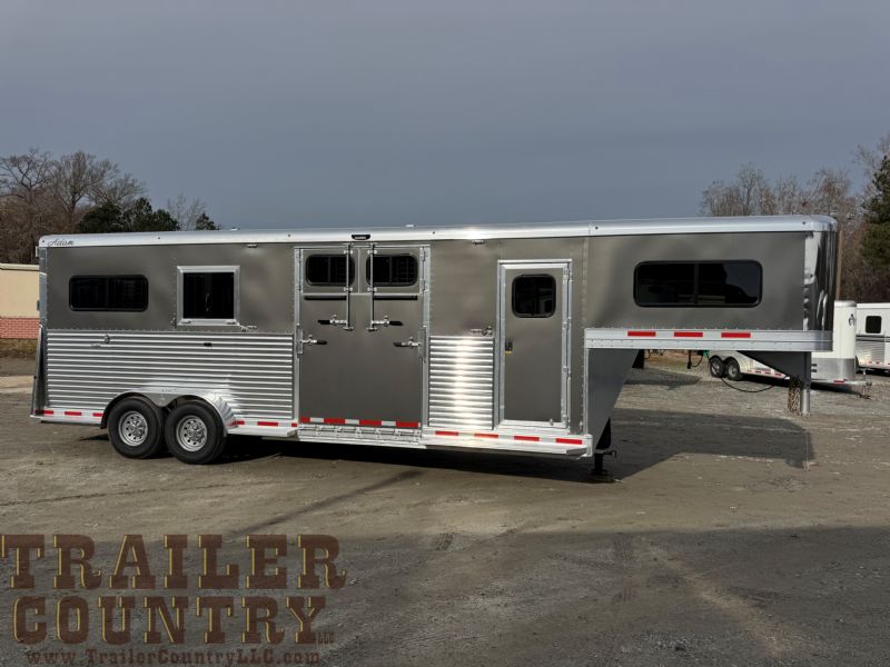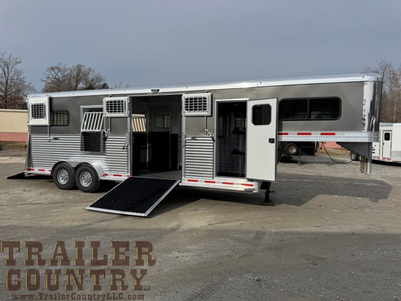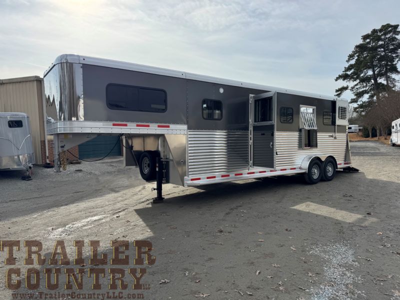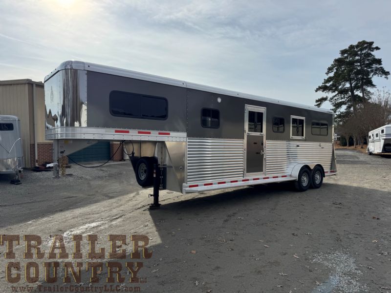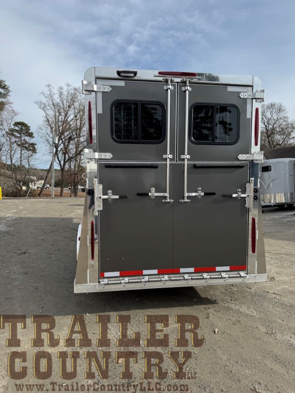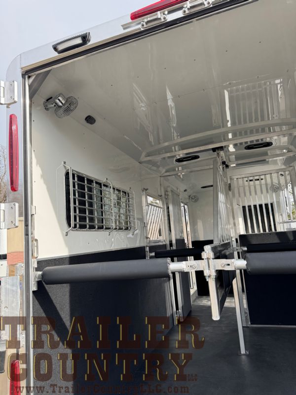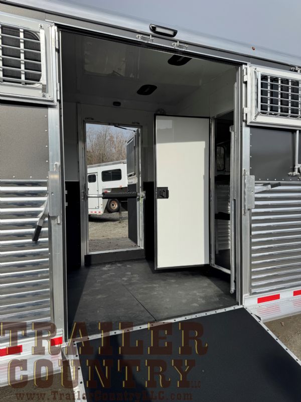 2026 Adam 2+1 8 tall, Large Box, Large Dress $52,175 Stock # TC8026 Video Link: https://youtu.be/KfV_2iiXjWA?si=0rGRXQK7aC_OtyXW CHARCOAL colored skin 8 tall, 7 wide, 24 floor length 5 dress and 19 horse area 9 box stall all aluminum 7000# Dexter torsion axles stud doors at straight horse heads drop head windows on straight horses drop head window in full size escape door 60 side ramp with top curtains with sliding windows rear ramp with top curtains with sliding windows INSULATED ceiling throughout walk through door from horse area to dressing room four 12v fans in horse area polished extrusion and top rail heavy duty window bars on large horse area sliders manual jack hydraulic can be added for additional cost upgraded Dalton door on dressing room padded divider padded breast/butt bars all dividers are removable LED interior lights, LED load lights, LED running lights spare tire mounted under nose 5 dresser includes bridle hooks, 3 saddle racks, mats on dresser floor, carpet in nose and on drop sheet, sliding windows in nose, walk through door from horse area to dressing room www.trailercountryllc.com info@trailercountryllc.com 757-646-7315 call or text 757-630-8664 Financing Available. Delivery Available. VA Dealer # 39905 |
