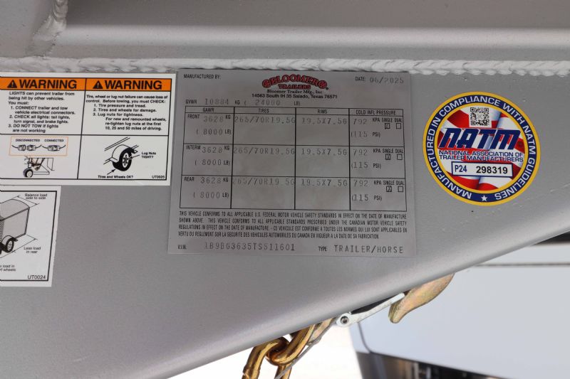 Call or Text Dave 314-498-9891 Email Dave@SOMTrailers.com Built to haul five horses in luxury and comfort. This New 2026 Bloomer 4+1 Horse Side Load Gooseneck Trailer features a premium 15'9'' Trail Boss Living Quarters, an XL rear stall for 5-horse capacity, and fully loaded upgrades throughout. Trailer Specifications Configuration: 4+1 Horse Side Load with XL Rear Stall Hauls 5 Dimensions: 35'8'' Floor Length 8 Wide 76 Tall Axles: Triple 8,000 lb HD Axles with Hydraulic Brakes Wheels/Tires: 17.5'' Alcoa Aluminum Wheels with 18-Ply Continental Tires Construction: All-Aluminum, Fully Insulated Exterior: White with Fully Polished Extruded Sides, Posts & Top Rail + Stainless Steel Nose Key Features: XL Rear Stall with 56'' Load Door 5-Horse Setup Integrated Hay Pod 78'' Hydraulic Slide-Out Dual Hydraulic Jacks Huge Rear Tack with Shelving, Medicine Cabinet & Combo Locks Drop-Down Head and Tail Windows Swing-Style Feed Doors Head Side European Frameless LQ Windows Mangers Under 4 Stalls Escape Door with Integrated Manger First Stall Stud Divider Keyless Entry on LQ and Tack Doors Walk-Through Door into Living Quarters Side Ramp Rear Mats Included Double Rear Doors Spare Tire Manufacturer Warranty Included 15'9'' Trail Boss Living Quarters Slide-Out: 78'' Hydraulic Slide Room Sleeping Capacity: Sleeps 6 Queen Mattress Sofa Sleeper Dinette Sleeper Fold-Down Bunk Interior Finishes: Hardwood Cabinets and Moldings Genuine Leather Sofa Yokes and Designer Valances Designer Tacks and Knobs Custom Backsplash & Backlit Countertops Wooden Hat Racks Pocket Sliding Screen Door Pocket Door into Bathroom Two Floor-to-Ceiling Wardrobe Closets Kitchen & Appliances: 6.0 cu. ft. Refrigerator Microwave Recessed Cooktop Single Kitchen Sink Onan Generator Bathroom Amenities: 32 Radius Shower Stall Vanity with Porcelain Sink Linen Closet Toilet Full Walk-Through Access Climate & Entertainment: Ducted 15K BTU A/C Unit Heat System AM/FM/CD/TV Antenna/DVD Flat-Screen TV with DVD Player Inside and Outside Speakers 18' Electric Awning with Protective Shield Dimensions Recap Floor Length: 35'8'' Width: 8' Height: 7'6'' |