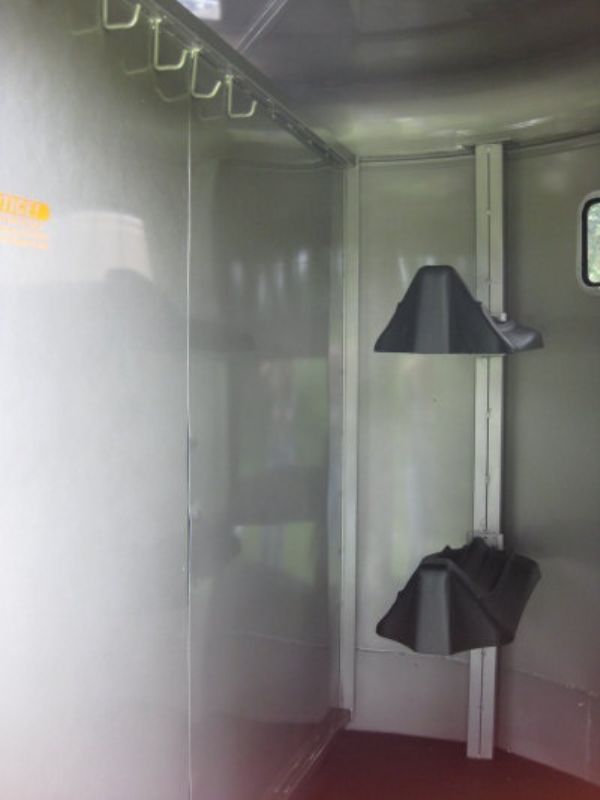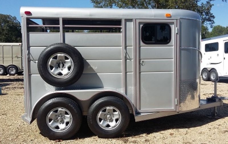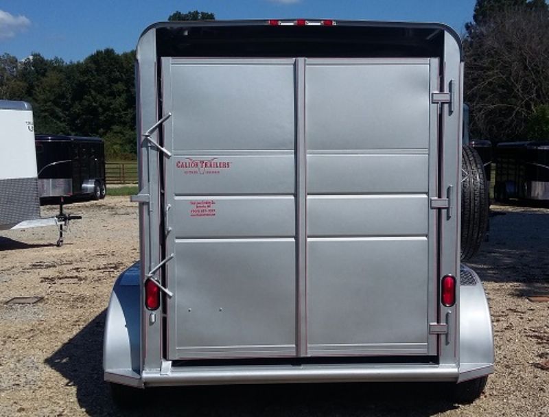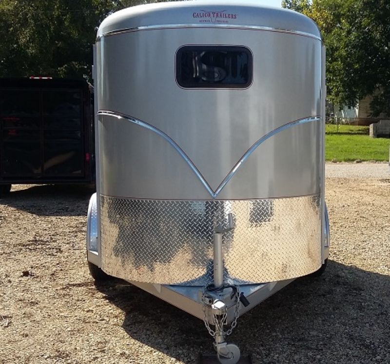 | New Calico 2 horse slant load, 12 x 6 x 6'6", 2740 lbs, swing wall dressing room, window in dressing room door, dome lights in dressing room and horse area, V-chrome on the front, 2 saddle racks, torflex axles, rubber on both walls, floor mats, including dressing room, spare tire.
