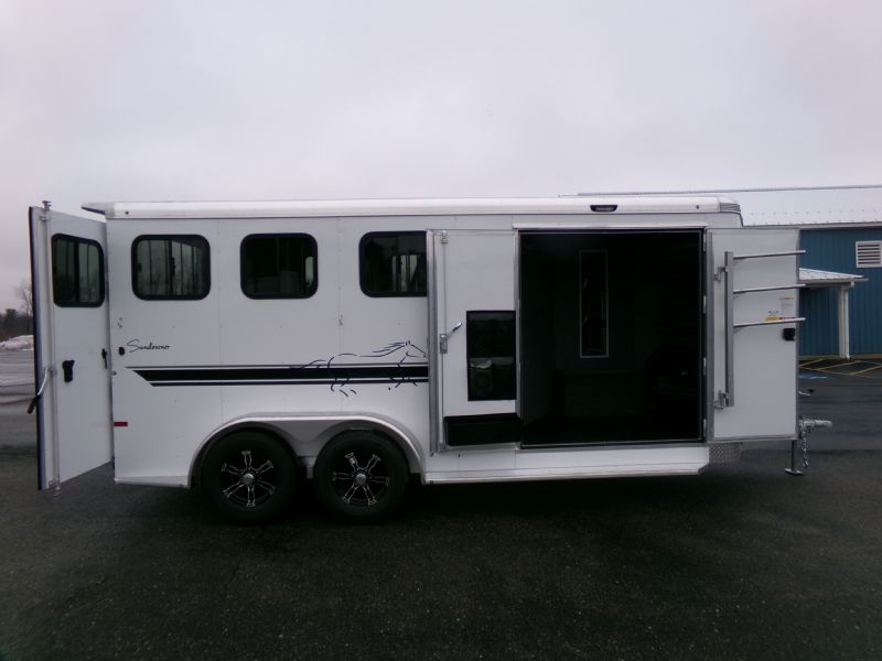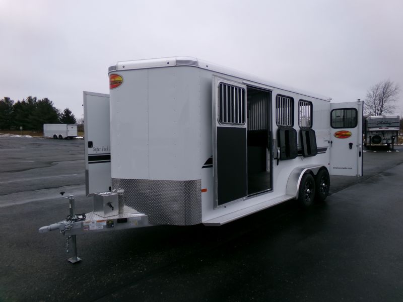 | 2026 Sundowner Super Tack 3H BP, 7' Tall, 6' 9" Wide, Polished top rail and rear post, Side Access door 1st Stall. Weld on hinges, Large front tack with double doors, Boot box, Hat Shelf, Saddle rack, bridle hooks, spare tire and more Contact Jim Kelly for more info 616-887-3456 or 616-437-2080