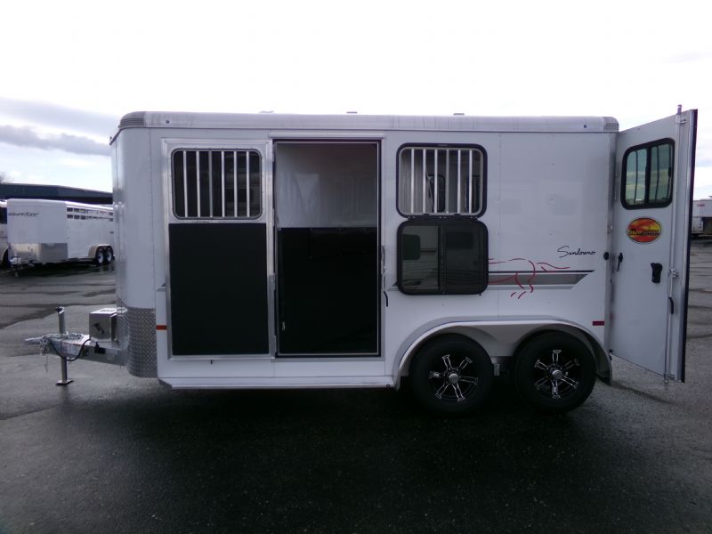 | 2026 Sundowner 2 Horse BP Super Tack, 7' Tall, 6' 9" Wide, Weld on Hinges, Large front tack with double doors, Boot box, Hat Shelf, Saddle rack and bridle hooks, Battery and Spare tire. Contact Jim Kelly for more info 616-887-3456 or 616-437-2080.