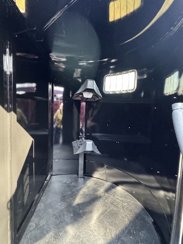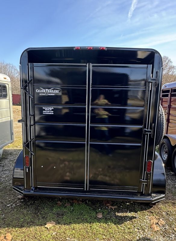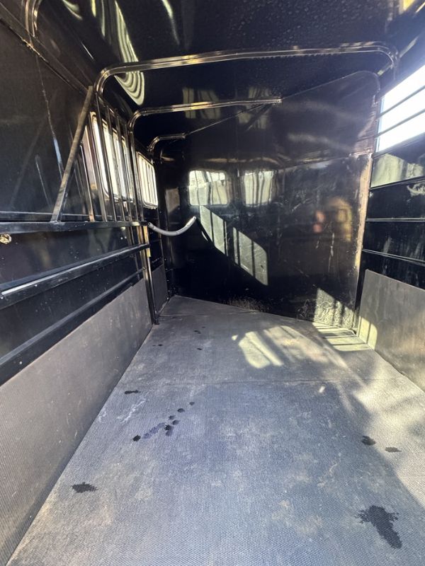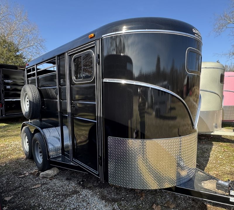 | New 2 horse trailer, 6 x 6'6" x 13, 2820 lbs., Swing wall dressing room with window in dressing room door, dome lights, torflex axles, 16-in 10-ply tires, slam latch on divider, drop-down windows, low profile roof, 2 saddle racks, rubber on both walls, mats, including dressing room, spare tire.