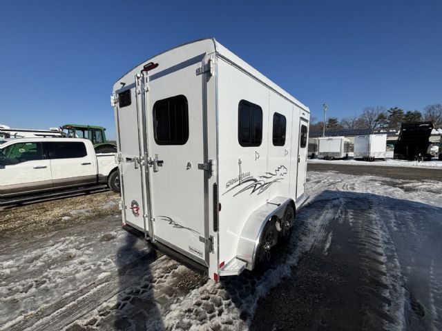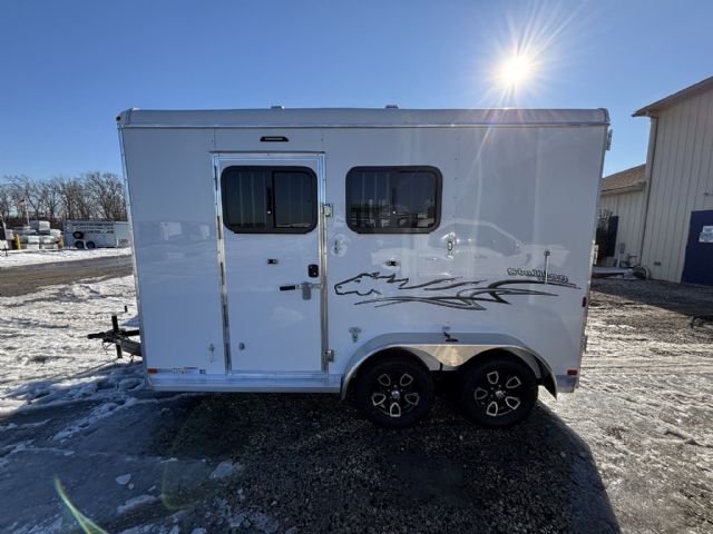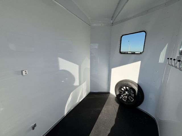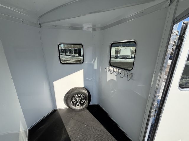 The Stallion delivers safety, comfort, and reliability for livestock transport. Its 213SB floor plan accommodates two horses in a slant-load configuration, reducing stress while maximizing space. Dimensions are 13 feet 0 inches in length, 7 feet 0 inches in width, and 7 feet 0 inches in height. With a gross vehicle weight rating of 7,000 pounds, it offers solid towing compatibility for a wide range of vehicles. Dry weight is 3,310 pounds and payload capacity is 3,690 pounds, leaving ample room for gear and supplies. The trailer’s enclosed design, two side doors, and rear loading opening provide convenient access for loading, unloading, and daily use. Inside, a bright white interior enhances visibility and creates a clean, calm environment for animals.