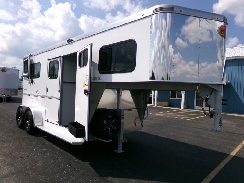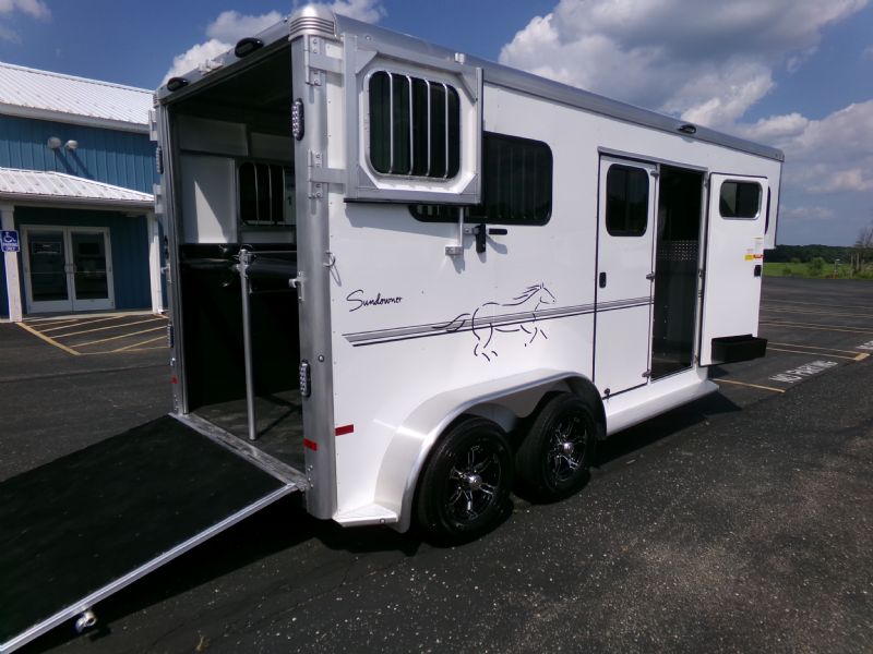 | 2026 Sundowner 2 Horse Straight Load Charter SE GN, 7' 6" Tall, 6' 9" Wide, 2 Horse Straight load, Insulated walls in horse area, Load Lights, Stainless Nose, Dressing room with bridle hooks, Saddle Rack and Spare Tire. Contact Jim Kelly for more info 616-887-3456 or 616-437-2080.