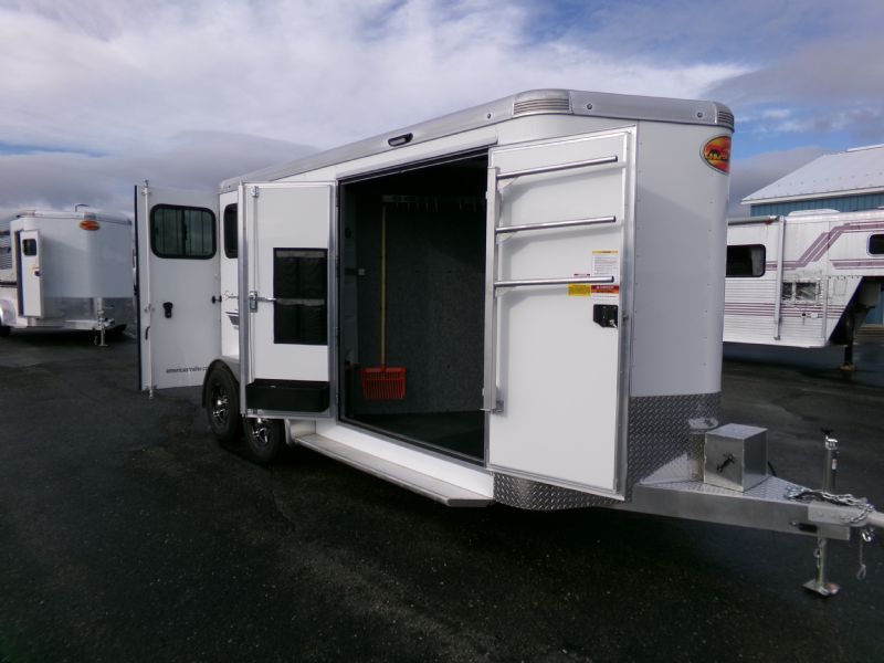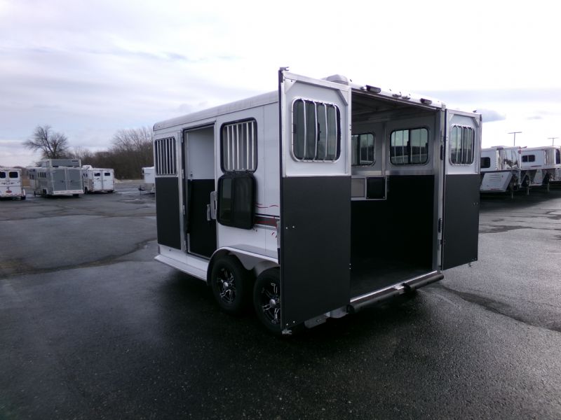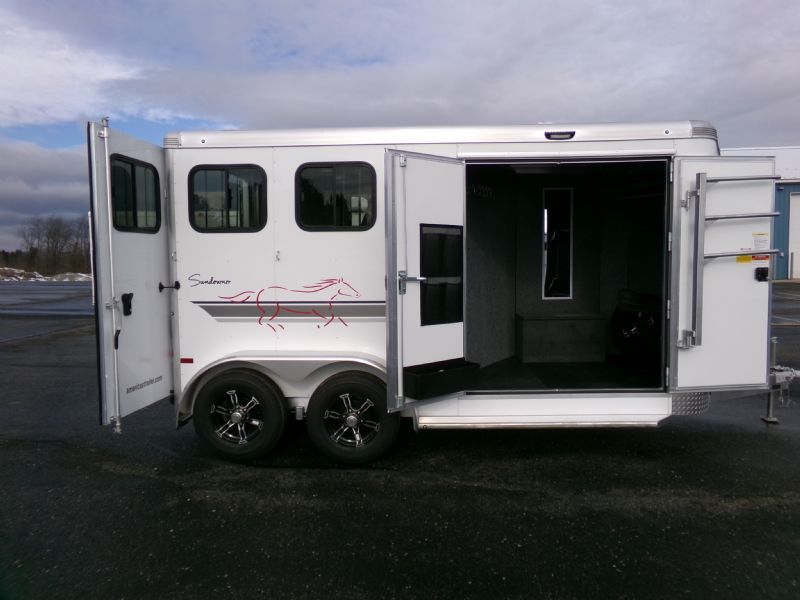 | 2026 Sundowner 2 Horse BP Super Tack, 7' Tall, 6' 9" Wide, Weld on Hinges, Large front tack with double doors, Boot box, Hat Shelf, Saddle rack and bridle hooks, Battery and Spare tire. Contact Jim Kelly for more info 616-887-3456 or 616-437-2080.