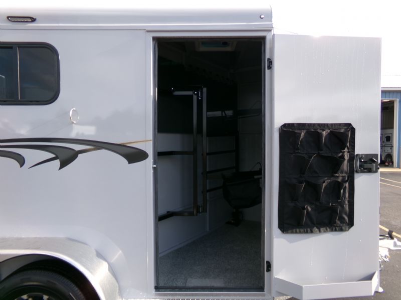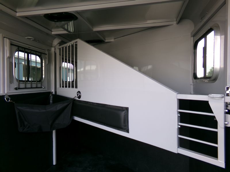 | 2026 Trails West 2 Horse Adventure MX, 7' Tall, 6'9" Wide, Windows in Rear Doors, Pads on Divider, Feed bags, Swing Out Saddle Rack, 20 Gallon Water tank, 15" Aluminum Rims and more Contact Jim Kelly for more info 616-887-3456 or 616-437-2080.