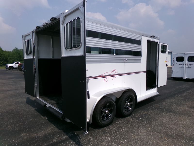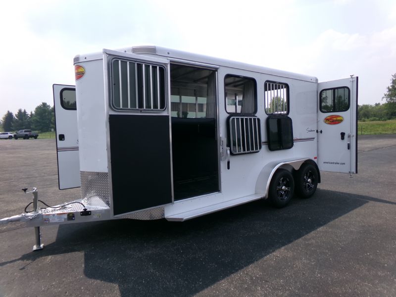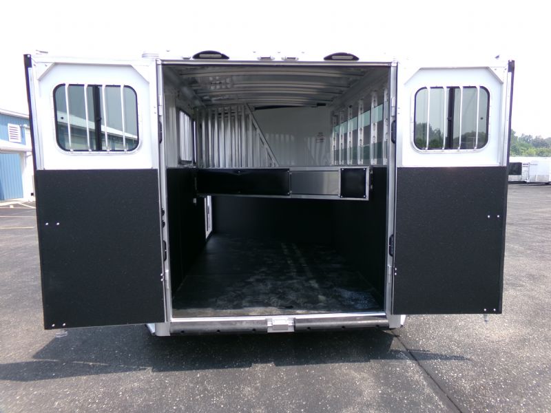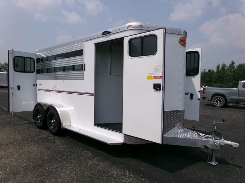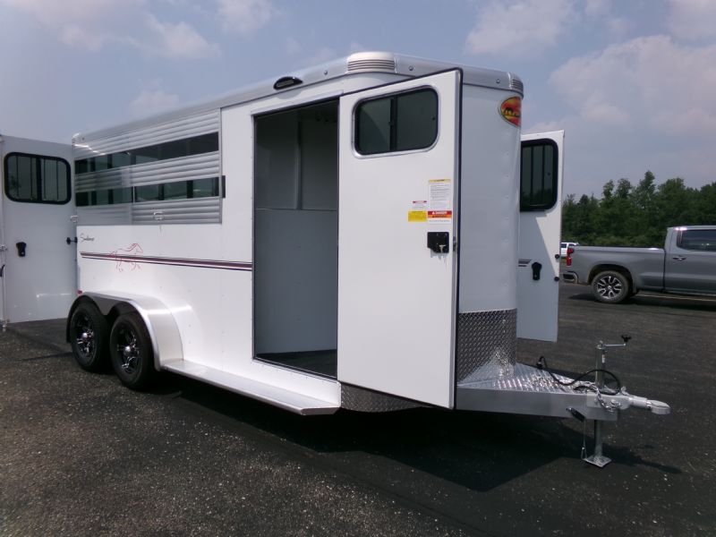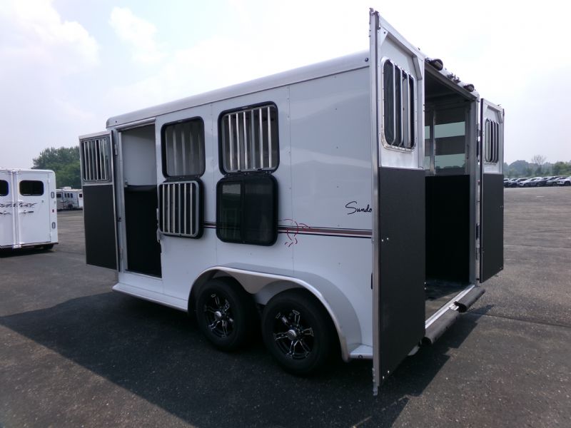 | PRICE DROP 2026 Sundowner Super Sport 3 Horse BP, 7' tall, 6' 9" wide, 15" Aluminum wheels, Side Access door, Gravel guard, dressing room, Saddle rack, Bridle hooks, Double rear doors, Drop windows on head wall and plexiglass slats on butt wall and more Contact Jim Kelly for more info 616-887-3456 or 616-437-2080.