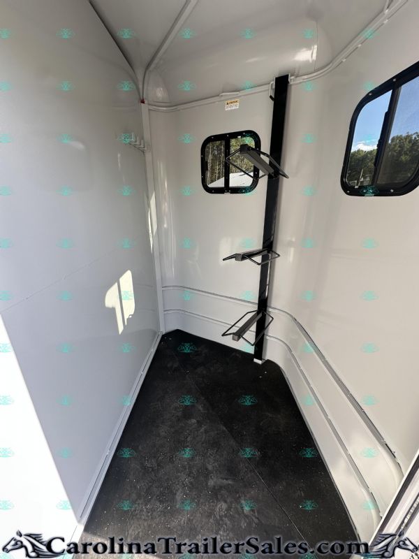 Upgrades Spotlight: Height Advantage: Enjoy the extra space with 76 Tall Sides, perfect for larger breeds and ensuring maximum comfort for your horses. Wheel Upgrade: Sleek Aluminum Wheels not only add to the aesthetic appeal but also offer durability and a smoother ride. Key Features: Type: 2 Horse Slant Load Bumper Pull Trailer Construction: Sturdy Steel Build Color: Elegant Silver Finish Windows: Drop-down Head Windows and Slider Tail Windows for Ventilation Access: Convenient Escape Door Interior: Equipped with Mats and Front Tack for Storage Door: Single Rear Door for Easy Loading Dressing Room: Spacious Dressing Room to keep your gear organized and accessible. Additional Options: Spare Tire for Peace of Mind Manual Jack for Easy Handling Dimensions & Capacity: Length: 14 feet Width: 6 feet 8 inches Height: 7 feet 6 inches Empty Weight: 3600 lbs. GVWR: 7000 lbs Ideal for both competitive equestrians and casual riders, this trailer is built to last and designed to impress. This 2026 Valley Trailers model comes with a warranty, ensuring your investment is protected. |