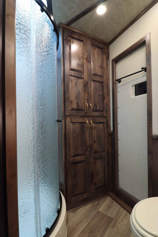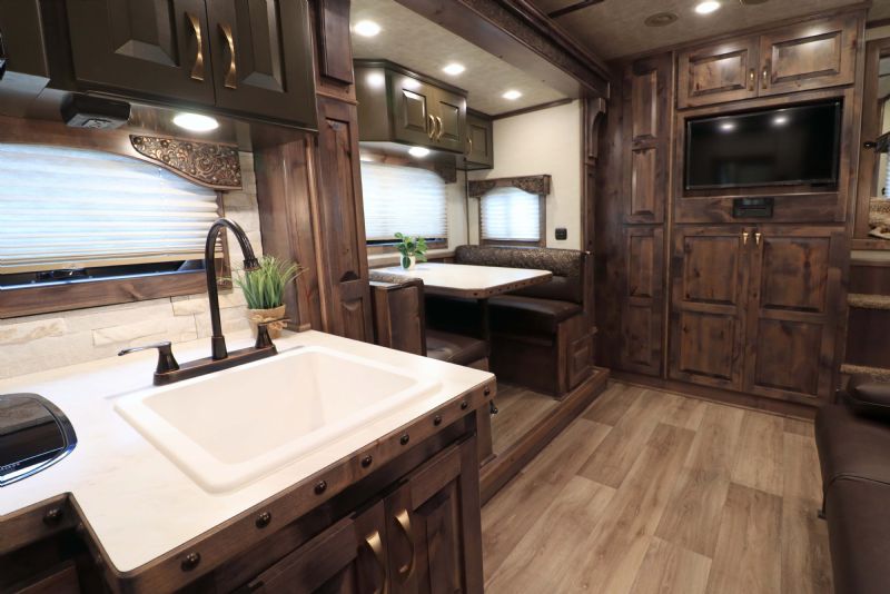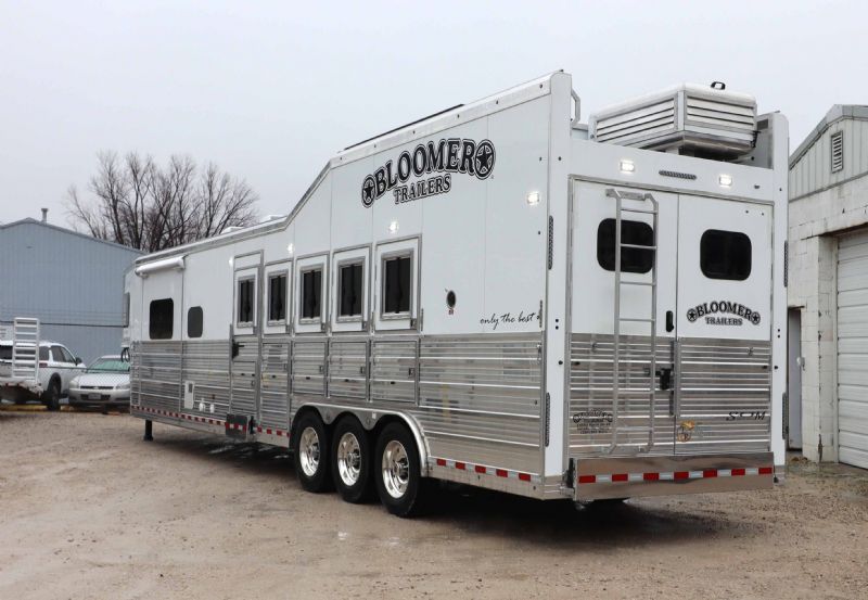 Built on triple heavy-duty 8K axles with hydraulic disc brakes and equipped with a 77 hydraulic slide-out, this model offers exceptional stability, space, and comfort for both horses and riders. This unit includes upgraded cabinetry, leather interior features, and an integrated hay podmaking it one of the most desirable configurations Bloomer builds. Trailer Specifications Configuration: 5 Horse Side Load with XL Rear Stall Dimensions: 3710 Floor Length 8 Wide 76 Tall Axles: Triple 8,000 lb Heavy-Duty Axles with Hydraulic Disc Brakes Wheels/Tires: 17.5 Alcoa Wheels with 18-Ply Continental Tires Construction: All-Aluminum Frame, Fully Insulated, Fully Polished Extruded Sides Exterior Color: White with Stainless Steel Front Ramp/Doors: Rear Ramp, Double Rear Doors, Side Access Additional Access: Escape Door with Integrated Manger Key Exterior Features Integrated 10 Hay Pod Dual Hydraulic Jacks Full Rear Tack with Shelving, Medicine Cabinet, Blanket Bars & Hooks European Frameless Windows Swing-Style Feed Doors Head Side Drop-Down Windows at Head & Tail Mangers Under All 5 Stalls Fold-Down Bench Stud Divider Walk-Through Door into Living Quarters Marker Lights on Top & Bottom Rails Spare Tire Included 159 Trail Boss Living Quarters with 77 Hydraulic Slide-Out Designed for long-distance hauling, full-time travel, and premium comfort, this Trail Boss Conversion delivers high-end materials, upgraded fixtures, and a spacious layout that sleeps up to 6. Sleeping & Seating Queen Mattress in Gooseneck Sofa Sleeper Dinette Sleeper Fold-Down Bunk Sleeps 6 Comfortably Kitchen & Appliances 6.0 cu.ft. Refrigerator Recessed Cooktop Microwave Upgraded Porcelain Sinks Stone Backsplash Upgraded Cabinet Hardware German Beech Cabinetry & Moldings Onan Generator 5500 2AC's Bathroom Amenities Large Marbled 32 Radius Shower Vanity with Storage Porcelain Sink & Toilet, stone backsplash Pocket Door Entry Pocket Sliding Screen Door Two Floor-to-Ceiling Wardrobe Closets Second Heat Source Inside/Outside Speaker System 32 Flat-Screen TV with DVD Upgraded 4.5 LED Interior Lighting 19 Electric Awning with Weather Shield Wooden Hat Racks Genuine Leather Valances, Sofa Yokes & Accents Dimensions Recap Floor Length: 3710 Width: 8 Height: 76 Contact Information This New 2026 Bloomer 5 Horse with 159 Trail Boss LQ is fully equipped, exceptionally built, and ready for immediate delivery. Trades considered. Financing and FREE limited nationwide delivery are available. Call Dave: 314 498-9891 Email: dave@somtrailers.com |