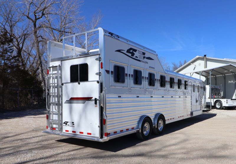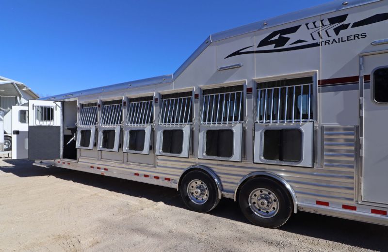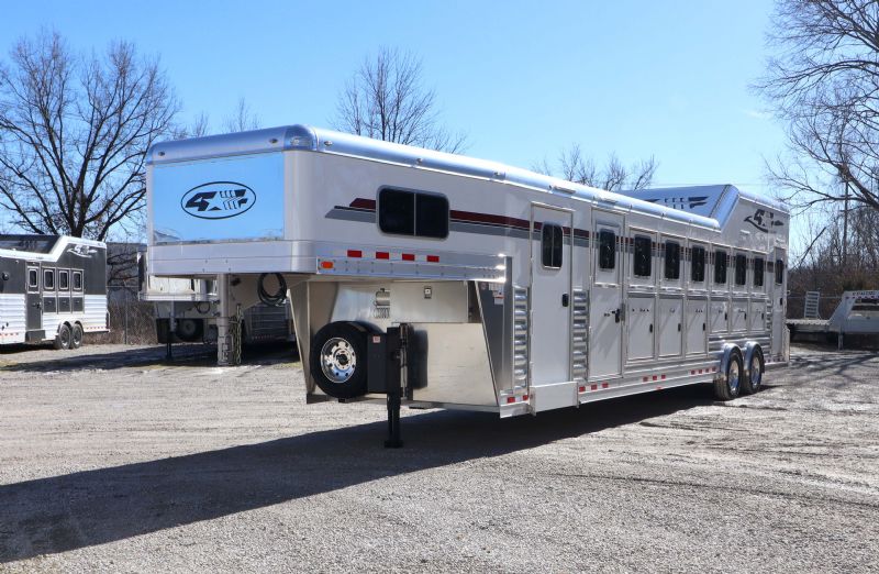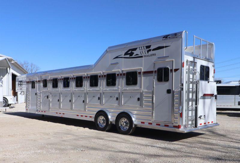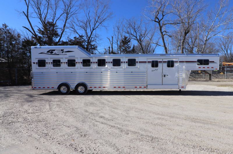 | New 2026 4 Star 7 Horse Trainer just hit the lot. Free limited delivery, Financing available. Trades will be considered. Trailer Features: 34' floor, 7.5' tall, 8' wide, 6' short wall, 10' trainer side tack, 40' stalls, 54" broom closet, 9k spread tandem torsion axles, 17.5 Alcoa wheels, Michelin tires, Hydraulic brakes, WERM floor, Mangers, Integrated pod, Angled pull out ladder, Gas struts on every door, Easy lift ramp, Escape door, Stud wall, Optronix LED lights, Lined and insulated, Drops front and back, Extra bridle hooks, Rope hangers and Pull out saddle racks. Call Dave for more info at 314-498-9891 or email dave@somtrailers.com |