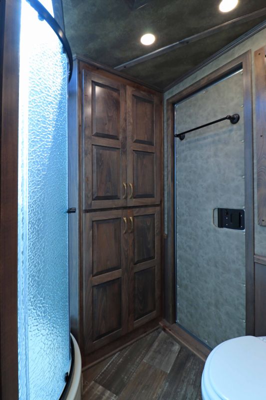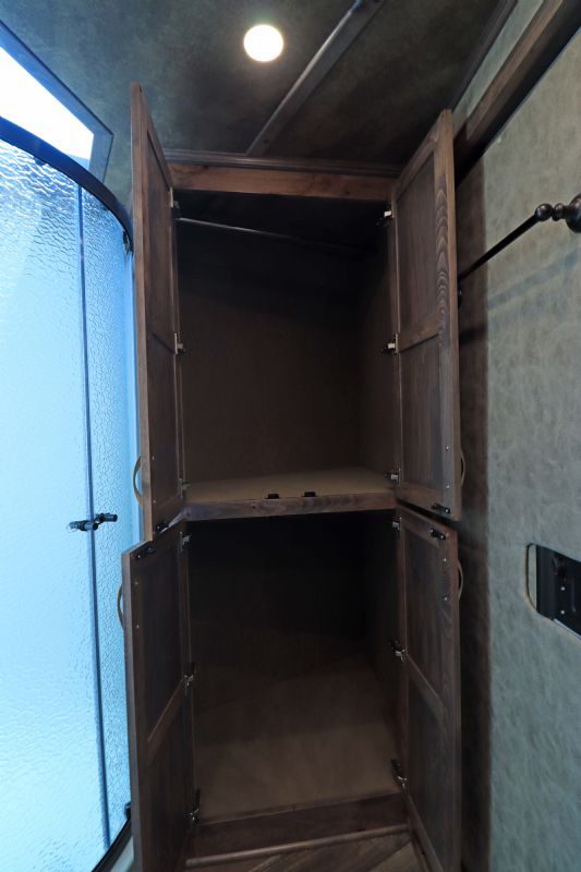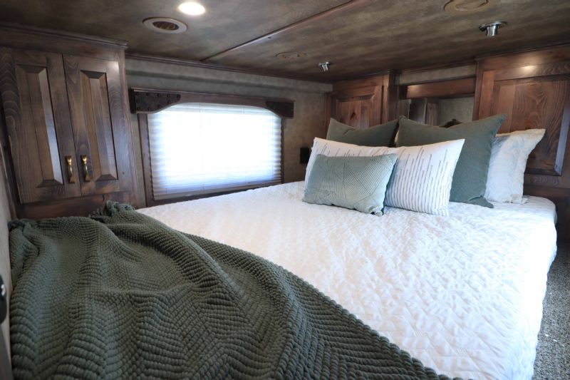 Trailer Features: 38.5' floor 8' wide by 7.5' tall Triple 8K axles blocked w/hydraulic brakes 7' slide room 17.5'' Alcoa wheels with 18 Ply Michelin tires 10' Integrated Hay pod Full rear tack with shelving/hooks/splint racks & blanket bars Dual hydraulic jacks Fully insulated Angled pull out ladder Drops front and stock slats rear European frame-less windows Mangers under 5 stalls Escape door first stall Stud divider Escape door Walk thru door into LQ Optronix LED stall and tack room lights Fully polished & extruded sides Stainless steel front LQ Features: 15'9" Trail Boss Conversion, Sleeps 6 comfortably! 77'' slide out, Onan generator, 18' Electric awning with shield, Genuine leather designer valances, leather accents and sofa yokes, Beechwood cabinets and moldings, Designer valances, Designer tacks & knobs, Stone back splash, Sofa & Dinette sleepers, Fold down bunk, Queen mattress, Ducted 15k AC unit, 6.0 Fridge, Porcelain sinks, Pocket door into bath, Pocket sliding screen door, Wooden hat racks, Flat screen TV with DVD Player, Inside/outside speakers, Large bathroom with radius shower stall, Vanity & Linen closet, Two Floor to ceiling wardrobe closets. Call Dave for more info, 314-498-9891 or email dave@somtrailers.com |