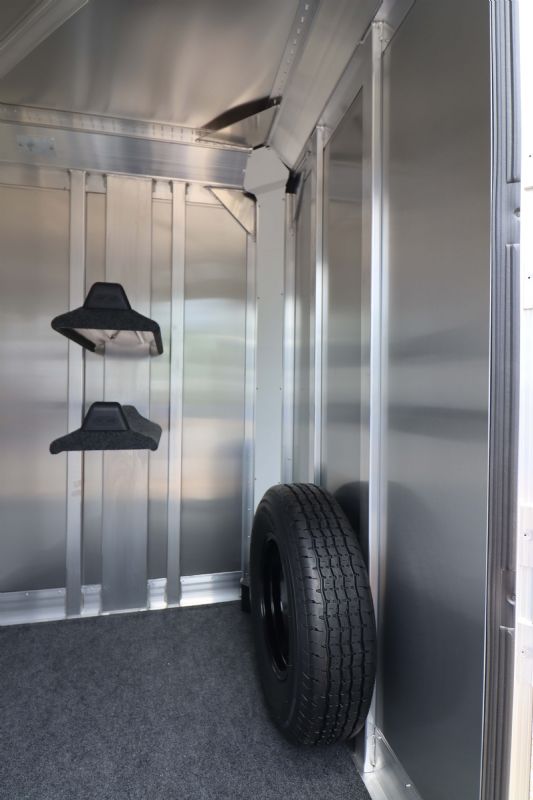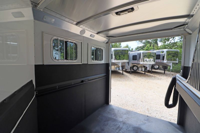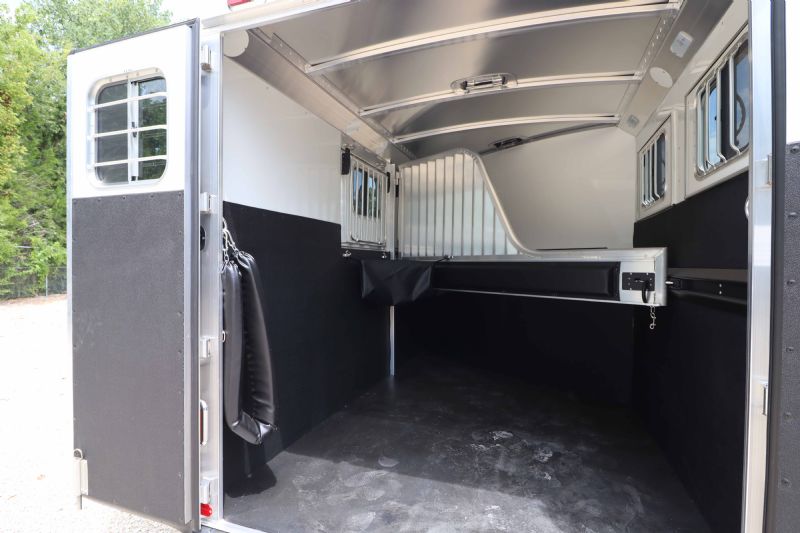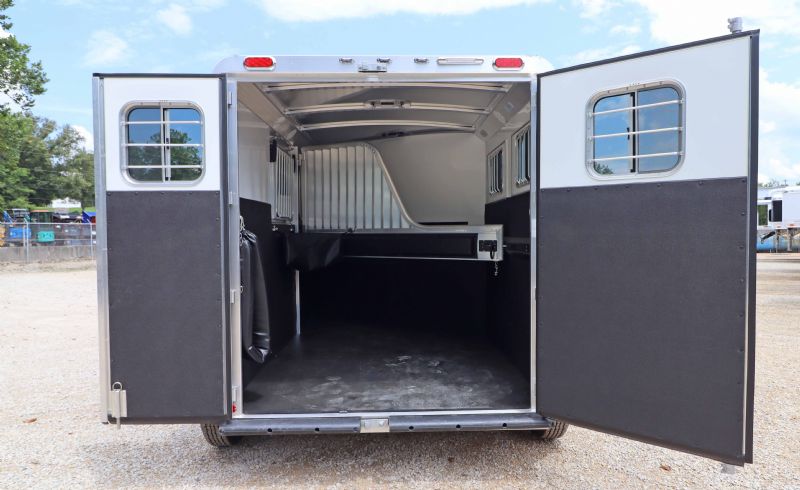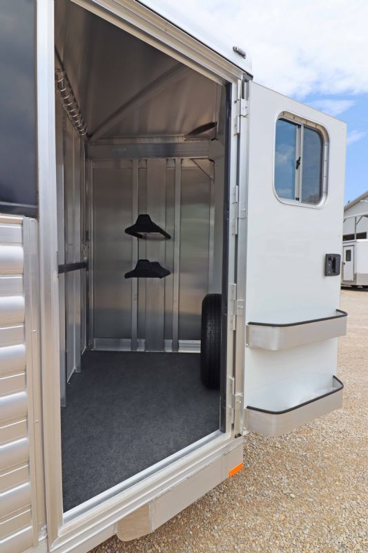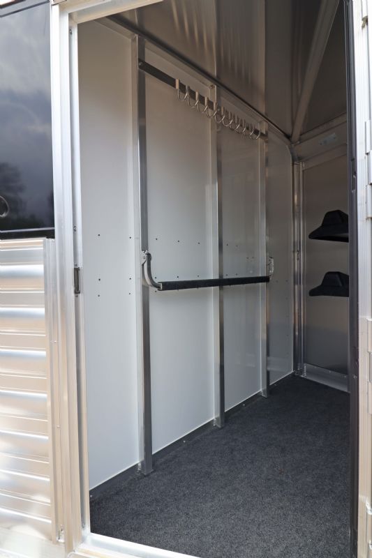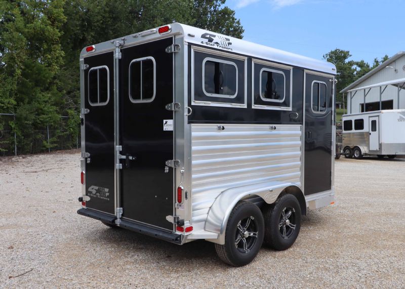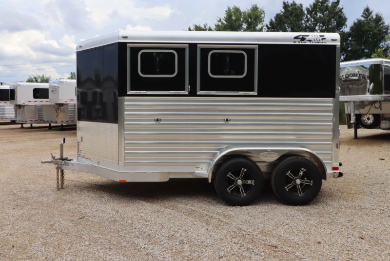 | 2025 4STAR 2H Bumper Pull trailers for sale @ reduced cost. 11' floor, 16' bumper to hitch, 7 wide, 7 tall, all aluminum, metallic black skin, 3500# torsion axles, aluminum wheels, extruded aluminum sides, drops front and back, rubber mats, lined lower walls w/kickplate and rubber, decked out tack/dressing room. Free limited delivery and finance available. Call Dave for more info, 314-498-9891 or email Dave@SOMTrailers.com |