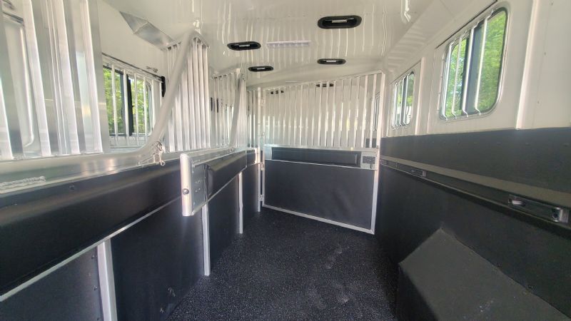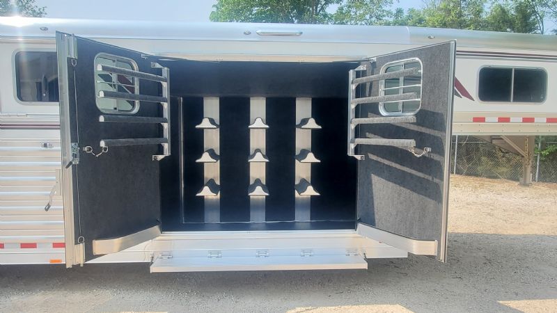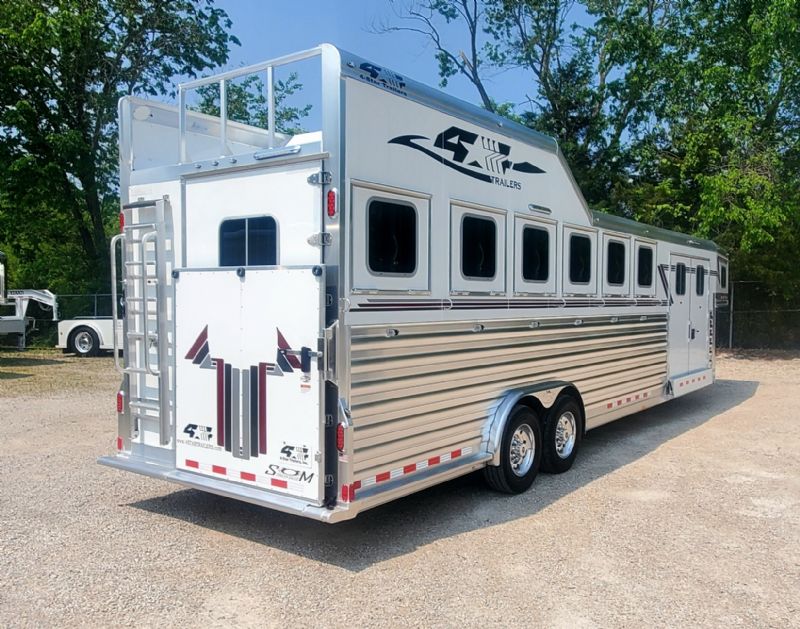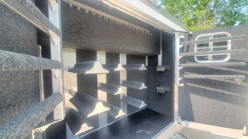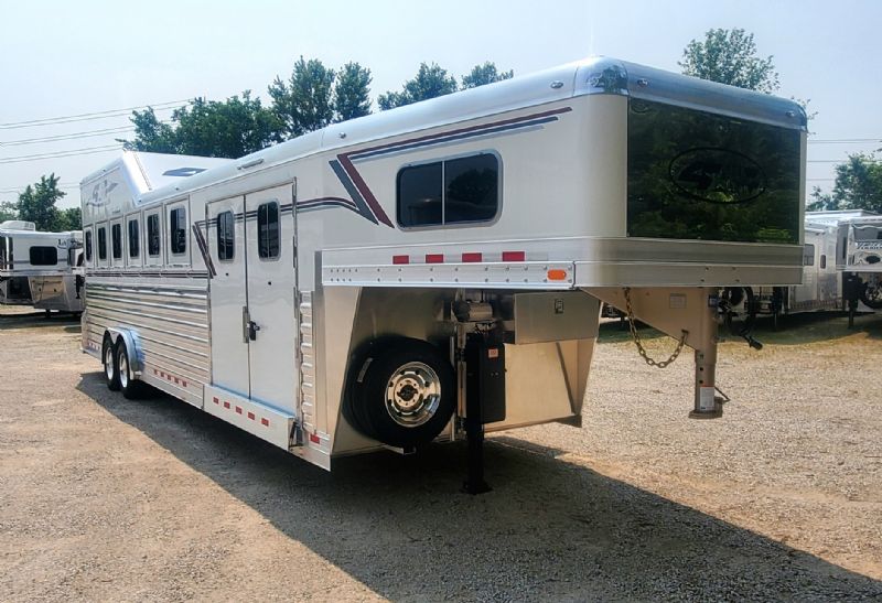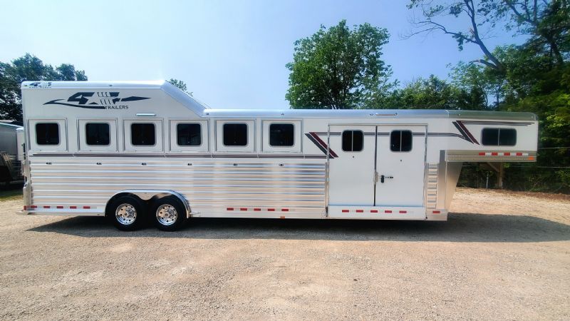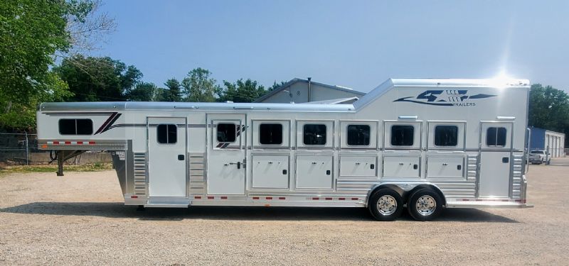 | Super slick, fresh 2026 4Star 6 Horse Trainer just hit the lot. Free limited delivery, Financing available. Trades will be considered. Trailer Features: 30.5' floor, 7.5' tall, 8' wide, 6' short wall, 10' trainer side tack, 40' stalls, 54" broom closet, 8k tandem torsion axles, 17.5 Alcoa wheels, Michelin tires, Hydraulic brakes, Mangers, Integrated pod, Angled pull out ladder, Gas struts on every door, Easy lift ramp, Escape door, Stud wall, Optronix LED lights, Lined and insulated, Drops front and back, 63 bridle hooks, Rope hangers and Pull out saddle racks. Call Dave for more info at 314-498-9891 or email dave@somtrailers.com |