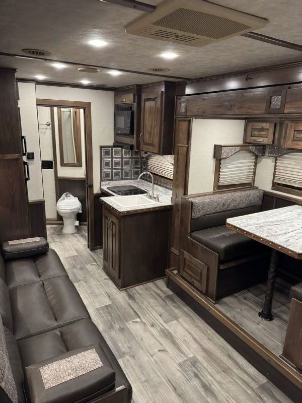 Extras: Mats, insulated, rear tack, double rear doors, warranty, 1 awning, 1 stud divider, side ramp, hayrack, AC/heat, walk-through door, 2 LP tanks, generator, spare tire, hydraulic jack