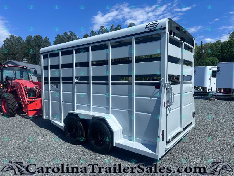 Introducing the 2027 Valley 16ft Stock Bumper Pull Trailer, designed for both efficiency and functionality. Whether youre transporting horses, livestock, or cargo, this trailer provides the flexibility and ease you need for all your hauling tasks. Key Features of the 2027 Valley 26816: Dimensions:16 Length x 6 8 Width x 7 6 Height, providing ample space within a manageable size for towing. Construction:Built with durable steel and finished in an attractive charcoal color, designed to withstand the elements and frequent use. Lightweight Design:Weighing only 3,270 lbs with a GVWR of 7,000 lbs, making it easy to tow without compromising on capacity. Functional Details:Includes mats for comfort and protection, a slider on the rear gate for easy loading and unloading, and a cute gate to secure your load. Accessibility:Features an escape door for quick access and added safety, ensuring a practical solution for all handlers. Why Choose the Valley 26816?The Valley 26816 is the ideal choice for those seeking a trailer that combines robust construction with lightweight design. Its perfect for individuals or businesses needing a versatile trailer thats easy to maneuver and efficient for various types of cargo. Additional Amenities: Comes with a warranty, ensuring your investment is protected. Equipped with a spare tire and manual jack for emergencies. Act Fast!This 2027 Valley 26816 Stock Trailer is the perfect solution for your hauling needs, blending practicality with modern features. Contact us today to learn more about this trailer or to arrange a viewing. Dont miss out on this opportunity to enhance your hauling capabilities with a brand-new, high-quality trailer! Need it hauled? We work with a Highly Recommended Hauling Company with reasonable rates. |