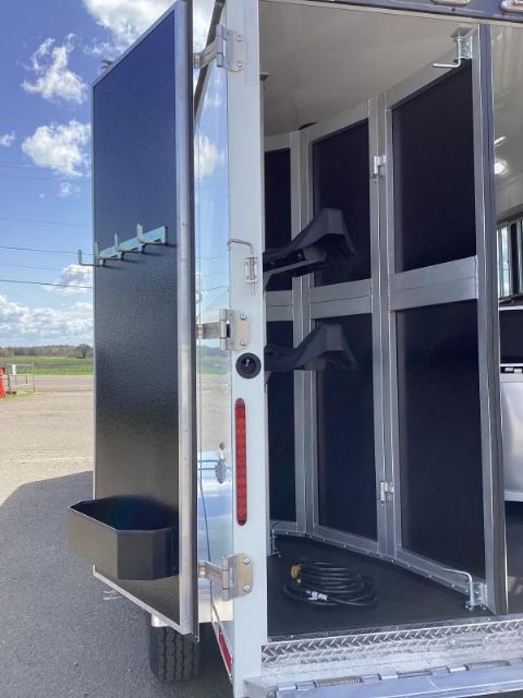 | The Bison Ranger boasts premium features and options similar to an aluminum frame trailer while ensuring equine well-being on every journey by pairing luxury with strength! Upgrades: 32" LCD TV w/Locking Swing Arm Lined & Insulated Horse Area Ceiling Stud Divider Load Light Package Trailer Features: 30Amp Service w/Detachable 30Amp Power Cord 6000# Axles LED Exterior Lights 2 5 gal. LP Tanks Single Leg Hydraulic Jack Batteries Grp. 24 w/Shut Off White Exterior Brite Nose Spare Tire & Rim TV/Radio Antenna Exterior Water Spigot Power Awning LQ Features: Step at Entrance Door LED Lighting throughout Mini Blinds w/Valance 13,500 BTU A/C 18,000 BTU Furnace Stereo with Interior & Exterior Speakers Recessed Cooktop w/Range Hood Rustic Interior Rustic Flooring Rustic Cabinetry Sofa Queen Mattress w/Bedspread Microwave 3 cu. ft. Refrigerator Shirt Closet Shower Curtain Shower w/Dual Control Handles Residential Faucets Stainless Steel Kitchen Sink 6 gal. Gas DSI Water Heater Porcelain Toilet Horse Area Features: Aluminum Rear Ramp Escape Door Drop Down Windows Head and Tail Side 3-Way Switch for Horse Area Drop Down Escape Door Window 60/40 Rear Load Doors Rubber Floor Mats Tack Area Features: Collapsible Rear Tack Bridle Hooks Brush Tray Fixed Saddle Tree on Removable Post Descriptions Subject to Error For more information on this trailer please contact Double J Trailers at 541-812-1234. Thank You! Financing available to qualified buyers! All trailer prices are cash prices. Thank you! Trades Welcome Two Lots To Better Serve You! Woodland Washington & Albany Oregon We have over 250 trailers in stock. Please view our entire inventory at www.double-j.comhttp://www.double-j.com/ thank you! Double J imposes a surcharge of 3% on credit card purchases of amounts greater than $500 |