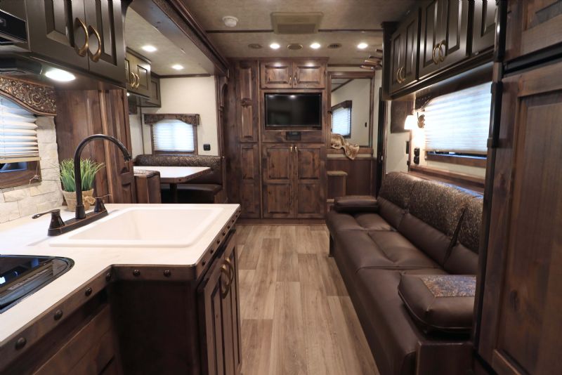 Built on triple heavy-duty 8K axles with hydraulic disc brakes and equipped with a 77 hydraulic slide-out, this model offers exceptional stability, space, and comfort for both horses and riders. This unit includes upgraded cabinetry, leather interior features, and an integrated hay podmaking it one of the most desirable configurations Bloomer builds. Trailer Specifications Configuration: 5 Horse Side Load with XL Rear Stall Dimensions: 3710 Floor Length 8 Wide 76 Tall Axles: Triple 8,000 lb Heavy-Duty Axles with Hydraulic Disc Brakes Wheels/Tires: 17.5 Alcoa Wheels with 18-Ply Continental Tires Construction: All-Aluminum Frame, Fully Insulated, Fully Polished Extruded Sides Exterior Color: White with Stainless Steel Front Ramp/Doors: Rear Ramp, Double Rear Doors, Side Access Additional Access: Escape Door with Integrated Manger Key Exterior Features Integrated 10 Hay Pod Dual Hydraulic Jacks Full Rear Tack with Shelving, Medicine Cabinet, Blanket Bars & Hooks European Frameless Windows Swing-Style Feed Doors Head Side Drop-Down Windows at Head & Tail Mangers Under All 5 Stalls Fold-Down Bench Stud Divider Walk-Through Door into Living Quarters Marker Lights on Top & Bottom Rails Spare Tire Included 159 Trail Boss Living Quarters with 77 Hydraulic Slide-Out Designed for long-distance hauling, full-time travel, and premium comfort, this Trail Boss Conversion delivers high-end materials, upgraded fixtures, and a spacious layout that sleeps up to 6. Sleeping & Seating Queen Mattress in Gooseneck Sofa Sleeper Dinette Sleeper Fold-Down Bunk Sleeps 6 Comfortably Kitchen & Appliances 6.0 cu.ft. Refrigerator Recessed Cooktop Microwave Upgraded Porcelain Sinks Stone Backsplash Upgraded Cabinet Hardware German Beech Cabinetry & Moldings Onan Generator 5500 2AC's Bathroom Amenities Large Marbled 32 Radius Shower Vanity with Storage Porcelain Sink & Toilet, stone backsplash Pocket Door Entry Pocket Sliding Screen Door Two Floor-to-Ceiling Wardrobe Closets Second Heat Source Inside/Outside Speaker System 32 Flat-Screen TV with DVD Upgraded 4.5 LED Interior Lighting 19 Electric Awning with Weather Shield Wooden Hat Racks Genuine Leather Valances, Sofa Yokes & Accents Dimensions Recap Floor Length: 3710 Width: 8 Height: 76 Contact Information This New 2026 Bloomer 5 Horse with 159 Trail Boss LQ is fully equipped, exceptionally built, and ready for immediate delivery. Trades considered. Financing and FREE limited nationwide delivery are available. Call Dave: 314 498-9891 Email: dave@somtrailers.com |